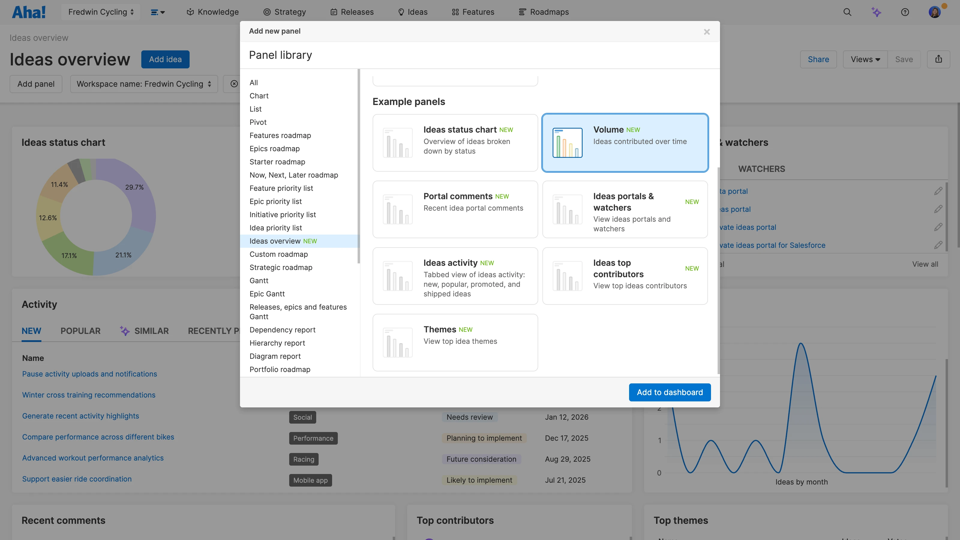Add custom panels to the Ideas overview dashboard in Aha! Ideas.