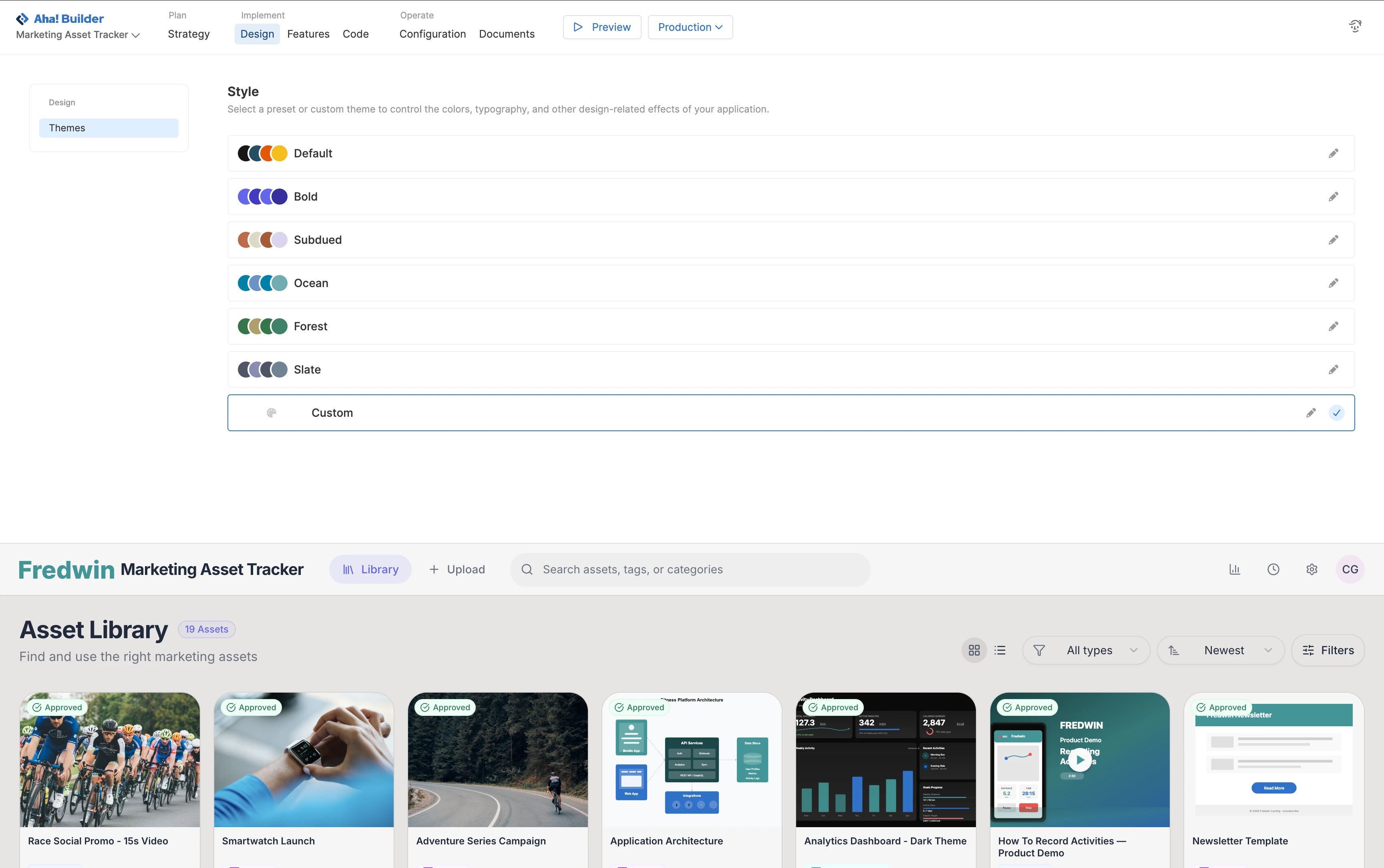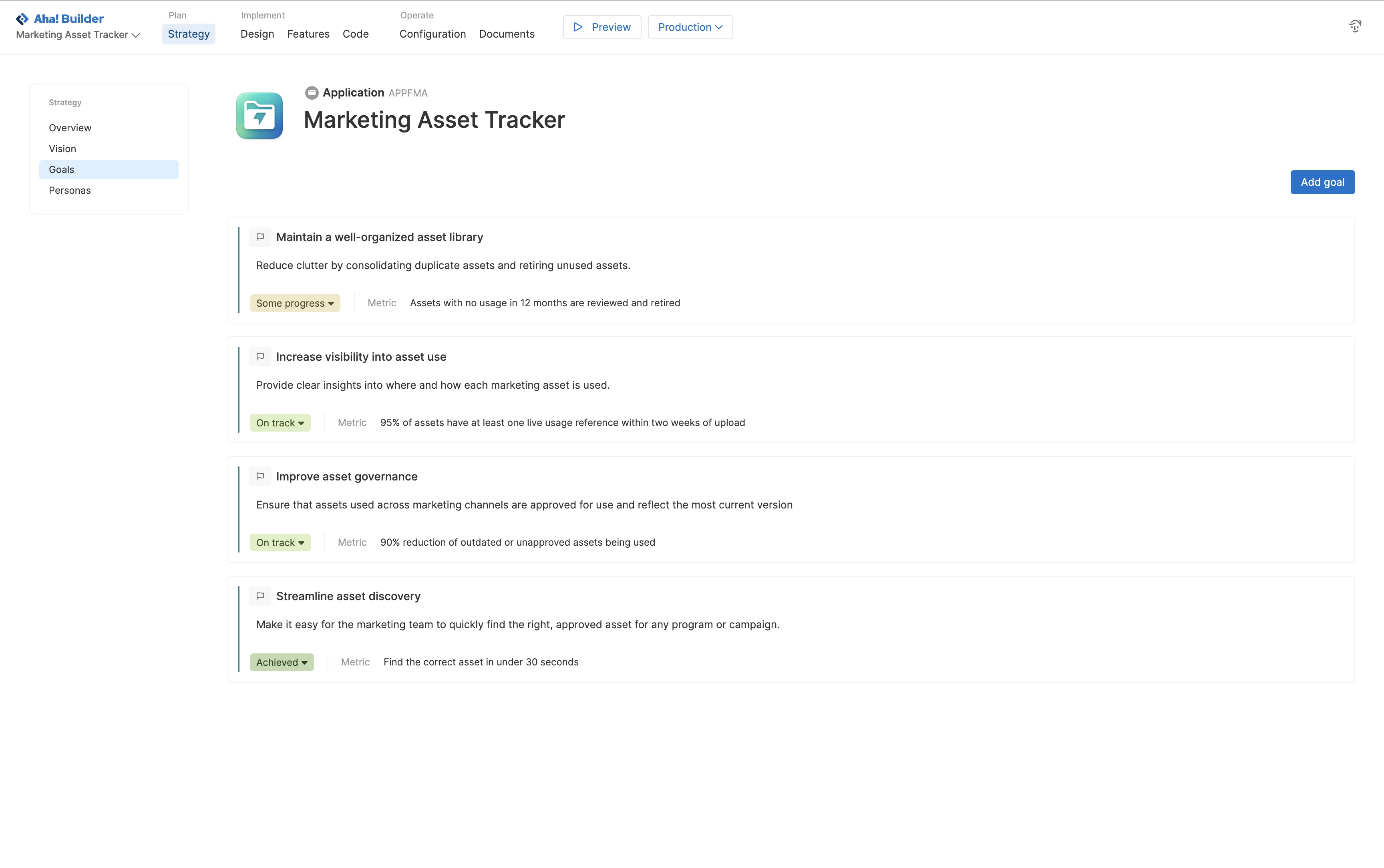 Here is what you can do with Aha! Builder. The application we are highlighting below in the screenshots was built to track marketing assets.